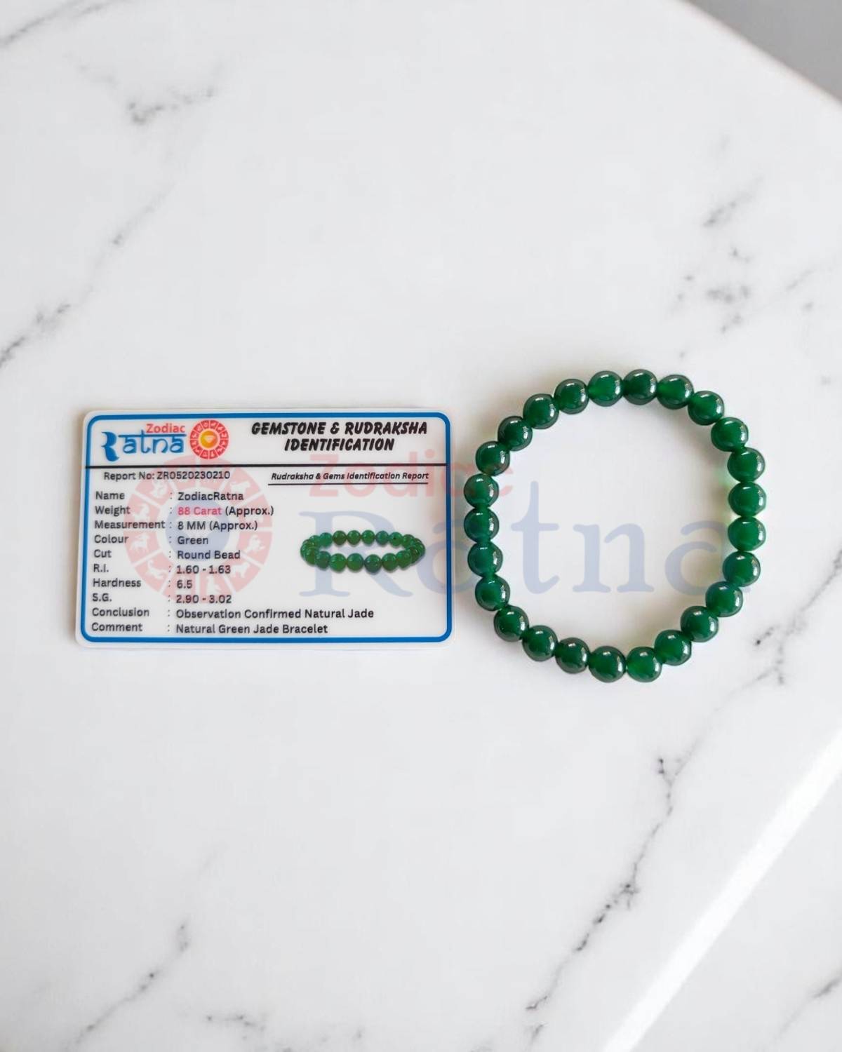 Wearing Green Jade is believed to support overall health, enhance resilience, and promote a vibrant and long-lasting energetic vitality.
