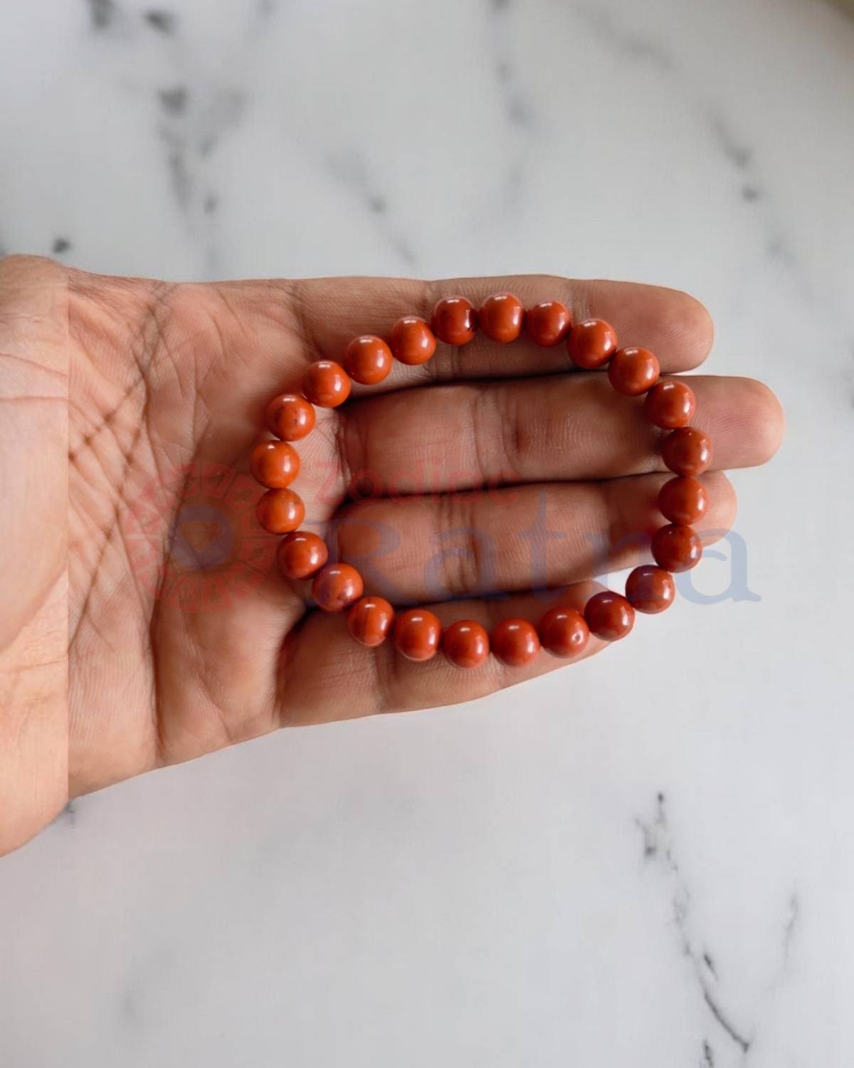 Ignite your powerful inner fire with the empowering energy of our Red Jasper Bracelet, meticulously crafted from rich, earthy Red Jasper gemstones. Revered as the “Supreme Nurturer,” Red Jasper deeply grounds you to the potent energies of the earth while significantly enhancing your courage, vibrant vitality, and unwavering emotional resilience.